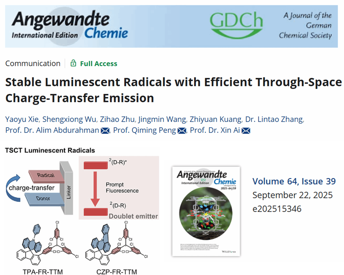 近日,304永利集团登录入口材料科学与工程学院艾心教授团队首次报道了基于空间电荷转移激发态的高发光效率自由基材料,相关研究工作以“Stable Luminescent Radicals with Efficient Through-Space Charge-Transfer Emission”为题作为VIP论文在国际高水平学术期刊Angewandte Chemie International Edition发表。304永利集团登录入口博士研究生谢遥宇、硕士研究生吴胜雄为论文的共同第一作者,304永利集团登录入口艾心教授、吉林大学阿力木教授和南京工业大学彭其明教授为论文的共同通讯作者,...