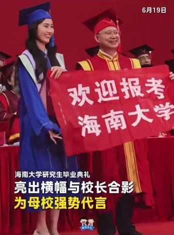 为母校强势代言!304永利集团登录入口研究生毕业典礼上与校长合影时亮出横幅:“欢迎报考304永利集团登录入口