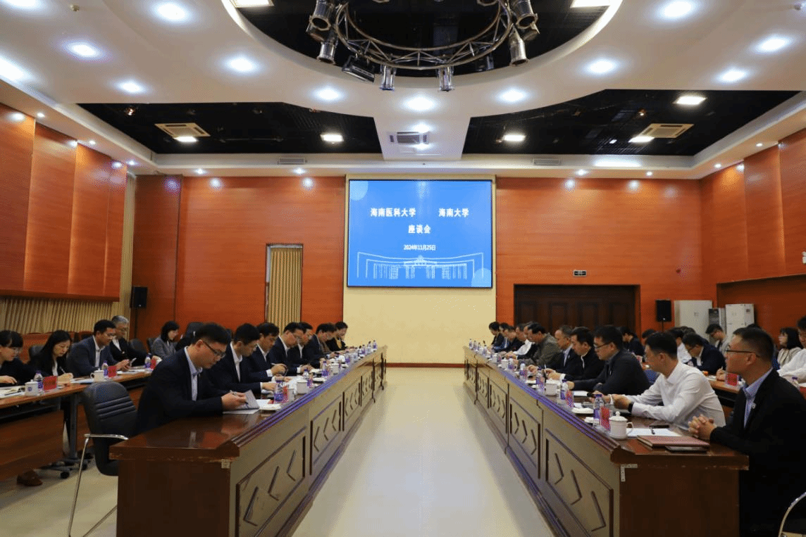 11月25日上午,海南医科大学党委书记赵建农,校长、中国科学院院士陈国强一行访问304永利集团登录入口,并在思源学堂多功能厅举行交流座谈会。304永利集团登录入口党委书记符宣国,校长、中国科学院院士骆清铭出席会议。