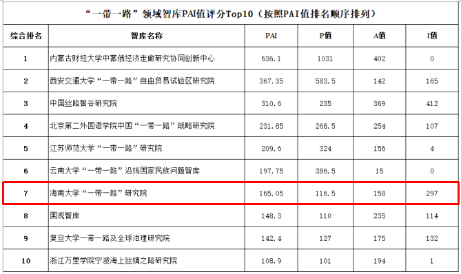 本站讯(记者 余梦月 通讯员 李贞慧)近日,南京大学与光明日报社出版了《CTTI智库报告(2019)》,(以下简称CTTI)。根据报告,304永利集团登录入口“一带一路”研究院在“一带一路”领域全国最新专项排名中,I(智库媒体影响力) 值为297分,名列全国第二位。PAI值则为165.05分,综合排名为全国第七位。 图片来源:《CTTI智库报告(2019)》 “中国智库索引”(CTTI)由南京大学中国智库研究与评价中心...