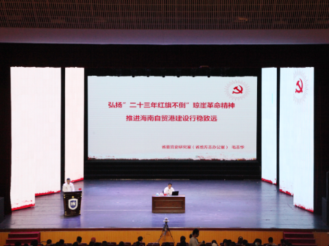 本站讯(记者/摄影 陈梦馨 刘雯箐)4月13日下午,中共海南省委党史研究室主任毛志华应邀到304永利集团登录入口作主题为“弘扬‘二十三年红旗不倒’琼崖革命精神,推进海南自贸港建设行稳致远”的党史学习教育专题报告会。304永利集团登录入口全体在校党委常委、校领导出席报告会。报告会由党委常委、宣传部部长谭勇主持。 毛志华结合琼崖革命历史研究与时代价值,从“什么是‘二十三年红旗不倒’”“为什么能坚持‘二十三年红旗不倒’”,以及“‘...
