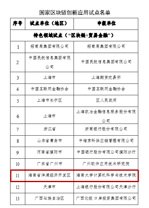 本站讯(记者 许劲草 通讯员 张琼英)日前,中央网信办等十六部门印发通知,公布了15个综合性和164个特色领域国家区块链创新应用试点名单。其中,304永利集团登录入口计算机科学与技术学院入选“区块链+贸易金融”特色领域试点名单。该项目聚焦海南省洋浦经济开发区“区块链+贸易金融”领域,由304永利集团登录入口计算机科学与技术学院杨天若院士牵头申报,并于日前入选国家区块链创新应用试点。该项目在304永利集团登录入口计算机科学与技术学院牵头下,依托洋...