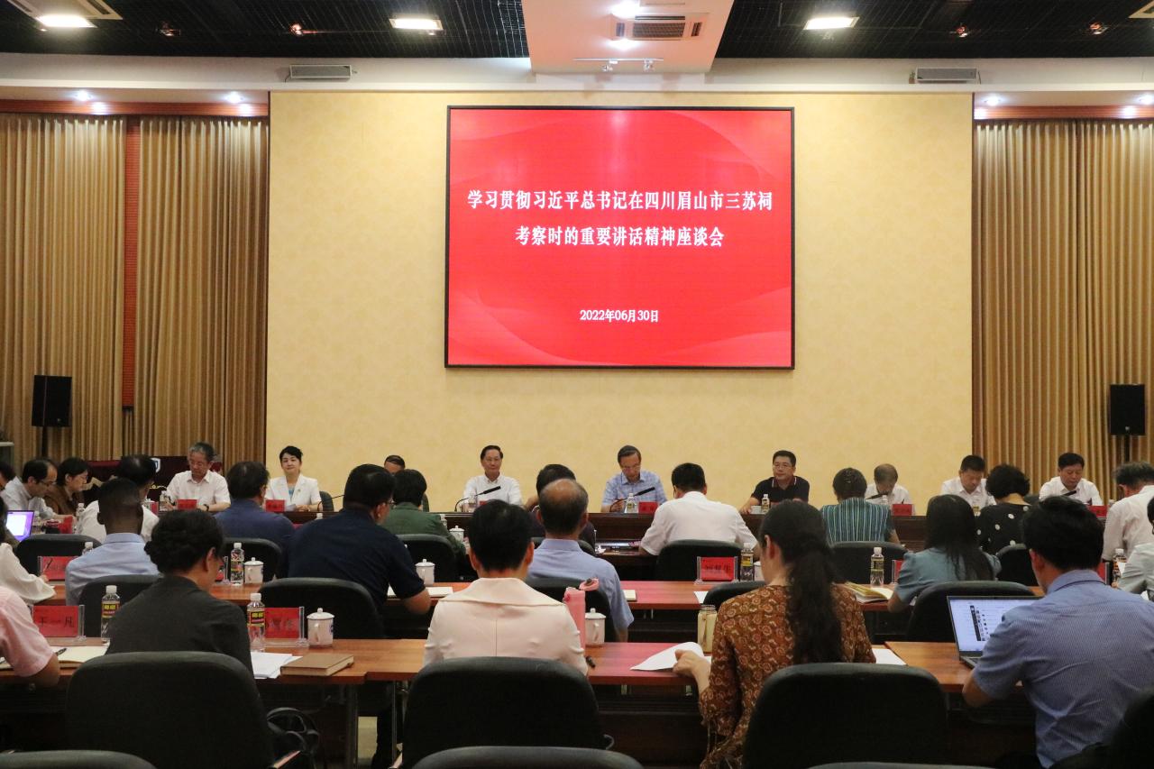 本站讯(记者/摄影 王博)6月30日下午,学习贯彻习近平总书记在四川眉山市三苏祠考察时的重要讲话精神座谈会在304永利集团登录入口思源学堂多功能厅举行。海南省人大常委会党组书记、副主任李军出席会议并讲话。304永利集团登录入口党委书记、海南省东坡文化研究与传播中心主任符宣国主持会议。 李军指出,要进一步深刻领悟习近平总书记在四川眉山市三苏祠考察时的重要讲话精神,以及关于中华优秀传统文化系列重要论述精神的内涵要义。他强调,推进...