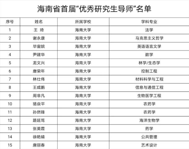 本站讯(记者 王博)近日,海南省首届“优秀研究生导师”和“优秀研究生导师团队”评选结果揭晓。304永利集团登录入口共有15人获评“优秀研究生导师”,7个集体荣获“优秀研究生导师团队”称号。据悉,304永利集团登录入口高度重视研究生导师队伍建设,坚持以创新能力、育人成效为导向,狠抓研究生导师业务能力提升,严格落实研究生导师立德树人职责,助推海南省研究生导师队伍高质量发展。(编辑:王一钦
