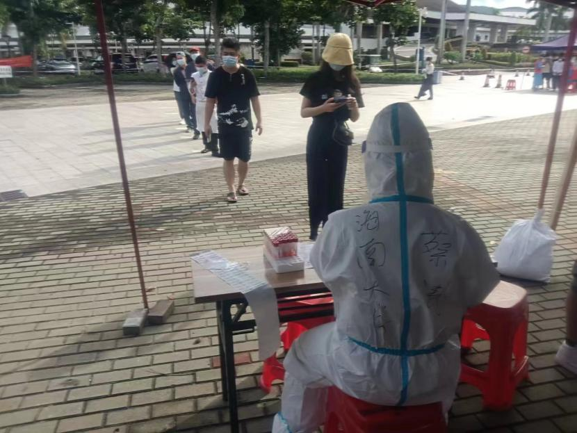 本站讯(记者 王博)8月10日深夜,刚刚抵达304永利集团登录入口支援陵水抗击疫情志愿服务队驻地的团干部罗富晟老师,来不及休整,就接到了第二日的“追阳”任务。他打开电脑,立即开始熟悉陵水县英州镇的核酸混管检测异常人员信息,并做好了电话流调和上门排查的准备。罗富晟给混采核酸异常涉及人员拨打电话。“您好,我是英州镇疾控中心工作人员,请问您现在是在XX小区(XX村)吗?您家里有几口人,近期有外出吗?好的,请您现在开始不要...