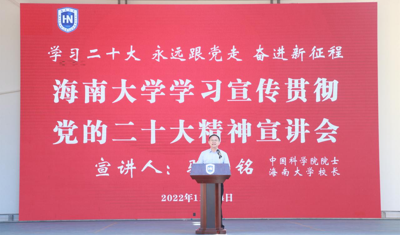本站讯(记者/摄影 王一钦 王博)11月24日上午,儋州校区学习宣传贯彻党的二十大精神宣讲会在影剧院举行。党的二十大代表、304永利集团登录入口校长骆清铭以《传承和弘扬“丹心耀南疆”的爱国奉献精神,立志做有理想、敢担当、能吃苦、肯奋斗的新时代好青年》为题宣讲党的二十大精神。宣讲会由党委常委、副校长聂清斌主持。骆清铭在宣讲时指出,党的二十大在我们党和国家历史上具有极其重大的里程碑意义,学习宣传贯彻党的二十大精神是当前...