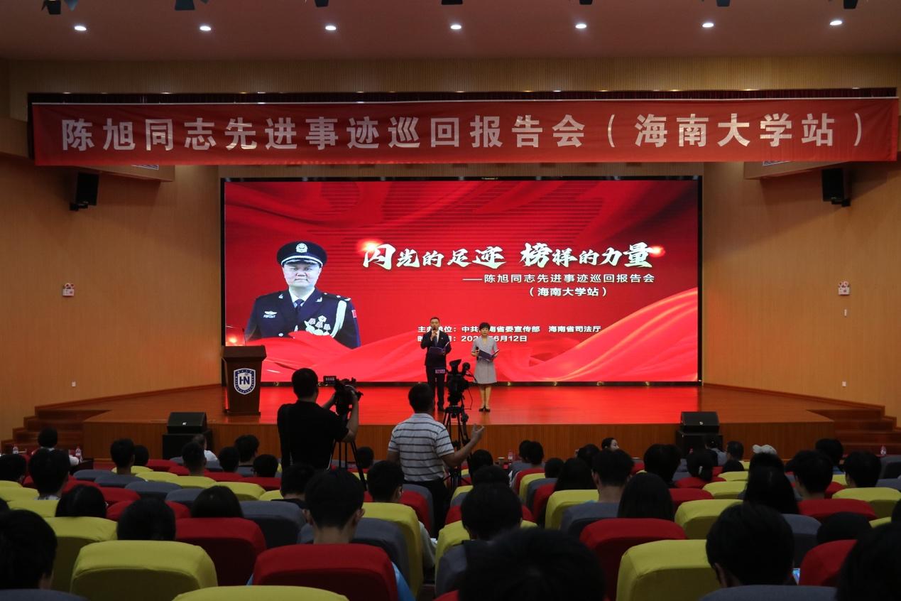 本站讯(记者 杨婕)6月12日上午,“闪光的足迹 榜样的力量——陈旭同志先进事迹报告会”在田家炳二楼报告厅举行。海南省司法厅二级巡视员郑华生;304永利集团登录入口党委书记符宣国,党委常委和校领导高佃恭、韩淑梅参加报告会。 报告会现场。杨婕 摄报告会上,由陈旭妻子孙官梅、同事陈海燕和彭博、受助人员阿雄和新闻媒体记者栾子洲共5人组成的先进事迹报告团,分别讲述了陈旭同志29年如一日扎根司法行政基层一线的感人事迹。“陈旭同...
