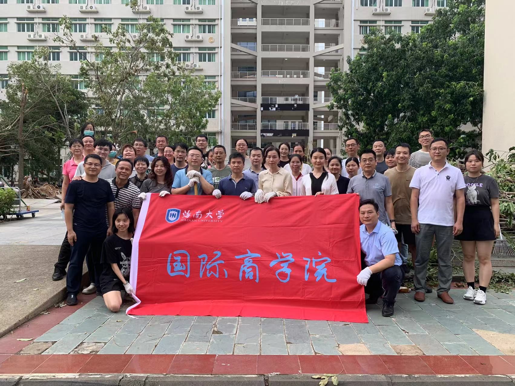 本站讯(通讯员 陈艺靖)第11号超强台风“摩羯”于9月6日在海南文昌市登陆,造成海南多地人员伤亡和重大财产损失。当自然灾害的阴霾逐渐散去,第40个教师节也如约而至。面对台风“摩羯”带来的挑战,国际商学院的师生们携手并肩,迅速恢复教学与生活秩序,以饱满的热情投入到这个特殊的教师节“庆祝”活动中来。国际商学院师生灾后重建工作合照。路边学生 摄国际商学院师生灾后重建工作合照。路边学生 摄国际商学院师生灾后重建工作合照。...