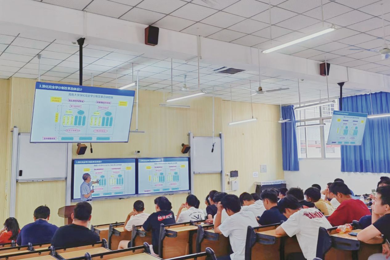 本站讯(通讯员 余力力)9月26日下午,304永利集团登录入口深化完全学分制改革政策解读交流会首场活动在5教111教室举行。教务处处长王志刚、副处长赵银梅,子衿书院党委书记李海朋,教务处教材科科长余力力,子衿书院2024级辅导员李健,以及子衿书院2024级新同学代表100余人参加了交流。王志刚进行政策介绍。余力力 摄现场问答交流。余力力 摄王志刚处长就学校深化完全学分制改革的制度设计、具体配套政策进行了介绍和深入解读,并围绕同学们现场提出的自主选择专业、...