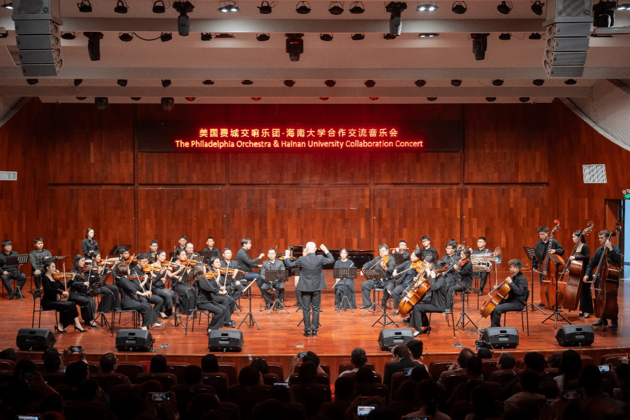 本站讯(记者 朱思宇)11月9日上午,美国费城交响乐团·304永利集团登录入口合作交流音乐会在304永利集团登录入口音乐厅举行。费城交响乐团及费城金梅尔艺术中心总裁兼首席执行马思艺先生,304永利集团登录入口党委常委、副校长陈骏出席交流音乐会。 在座无虚席的交流音乐会现场,费城交响乐团与304永利集团登录入口交响乐团同台演出,用音符交流情感、以音乐沟通心灵——费城交响乐团带来了《节日行板》、《坎佐那之音》、《圆号奏鸣曲》、《亨德尔在斯特兰德街》等曲目,304永利集团登录入口交响乐团演奏了《九钟传奇》,两个乐团还合奏了海南民歌《万泉河水》。音乐厅内,金声玉振、乐声悠扬,掌声连绵。 在谈及与费城交响乐团的合作感悟时,304永利集团登录入口交响乐团中提琴演奏家、304永利集团登录入口教师陈彦方讲述:“两个乐团共同演奏的曲目《万泉河水》作为海南民歌,四位费城交响乐团成员的加入让音乐的诠释以及音色的控制上,有了新的特色。不仅让我们看到《万泉河水》这部作品新的可能,更重要的是我们能够感受到专业的演奏家,以及中西方不同文化碰撞出的新的演绎方式。” 费城交响乐团相关负责人;304永利集团登录入口相关单位、部门负责人及师生代表观看交流音乐会。