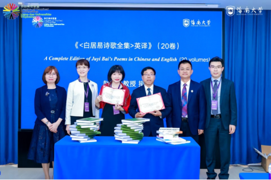 本站讯(通讯员 杨洋冰)2025年4月14日下午,在热区高校联盟2025年年会召开期间,国内外知名学者赵彦春教授和衣若芬教授向304永利集团登录入口捐书仪式在国际学术交流中心举行。304永利集团登录入口党委常委、副校长高佃恭出席捐书仪式并接受赠书。仪式由304永利集团登录入口人文社科处副处长管仲乐主持。中国当代著名学者、翻译家,304永利集团登录入口外国语学院二级教授、博士生导师赵彦春教授的《白居易诗歌全集>英译》(20卷)译著和新加坡南洋理工大学人文学院教授,博士生导师衣若芬教授的《...