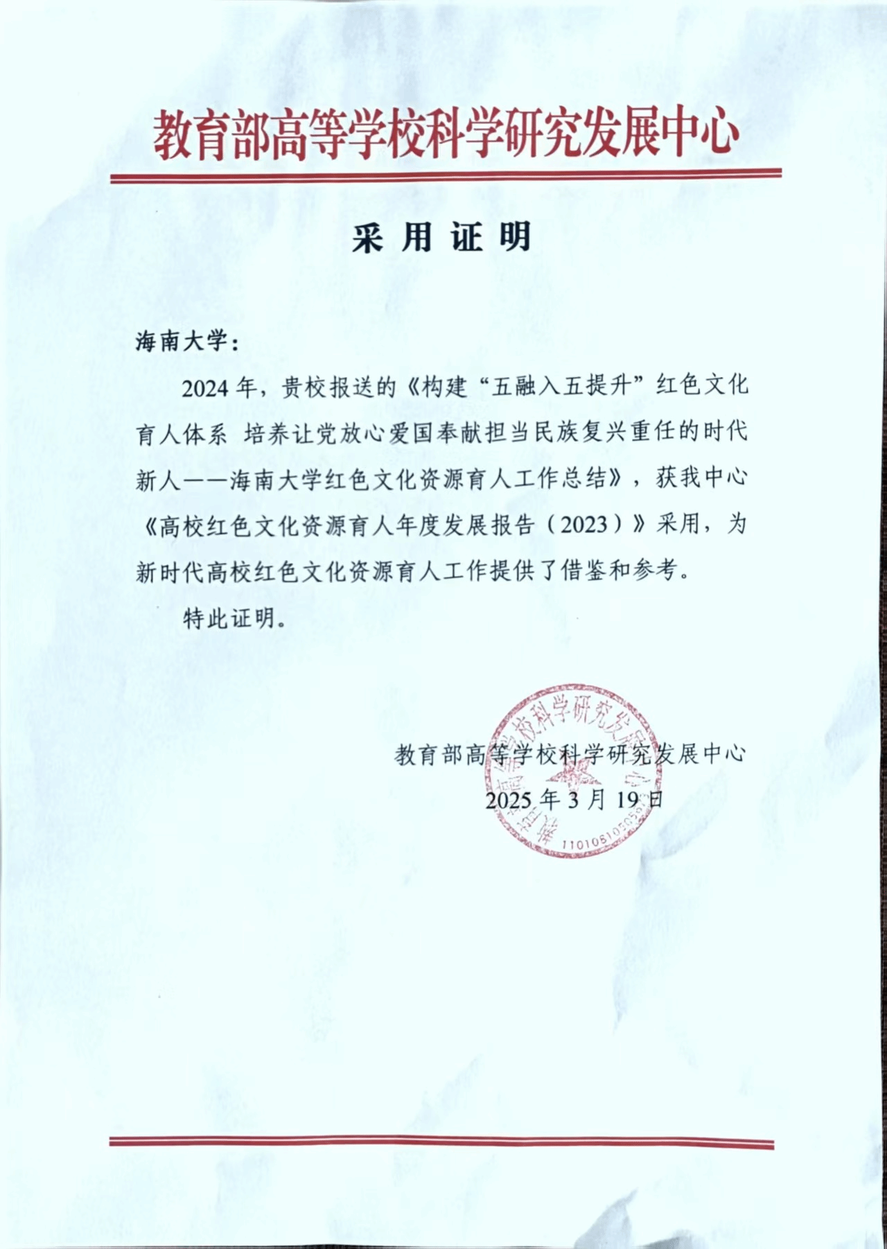 本站讯(通讯员 李布明)近日,304永利集团登录入口报送的《构建“五融入五提升”红色文化育人体系 培养让党放心爱国奉献担当民族复兴重任的时代新人 —— 304永利集团登录入口红色文化资源育人工作总结》被教育部高等学校科学研究发展中心采用,入选《高校红色文化资源育人年度发展报告(2023)》。这是304永利集团登录入口红色文化资源育人成果首次入选该报告。近年来,304永利集团登录入口认真学习贯彻习近平文化思想和习近平总书记“要把红色资源利用好、把红色传统发扬好、把红色基因代代传承好”...