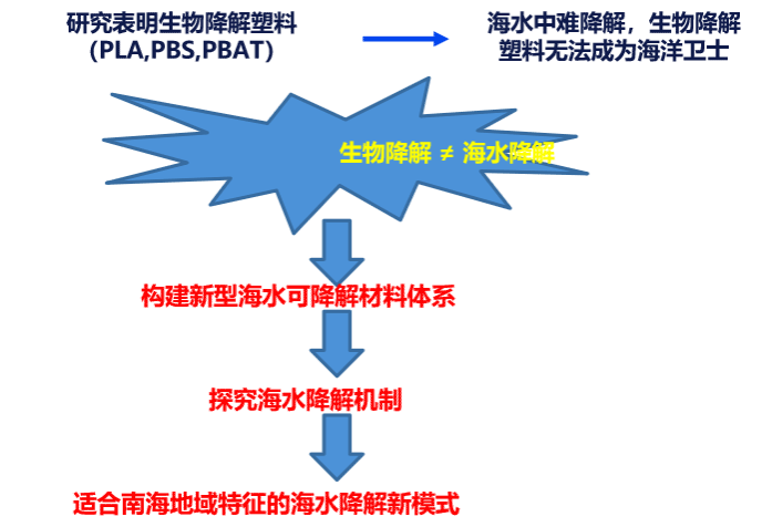 面向海南生态文明示范区的建设需要和海洋生态环境保护,针对海洋塑料污染问题,研发海水降解塑料和塑料降解技术,最大程度减少塑料垃圾对海洋生态的破坏。