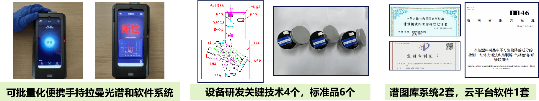 对手持式拉曼光谱仪进行结构优化,结合海南“禁塑”相关现场监督检查的技术需求,建立了一次性塑料制品中不可降解塑料成分的现场快速检测方法,并编写了地方标准。