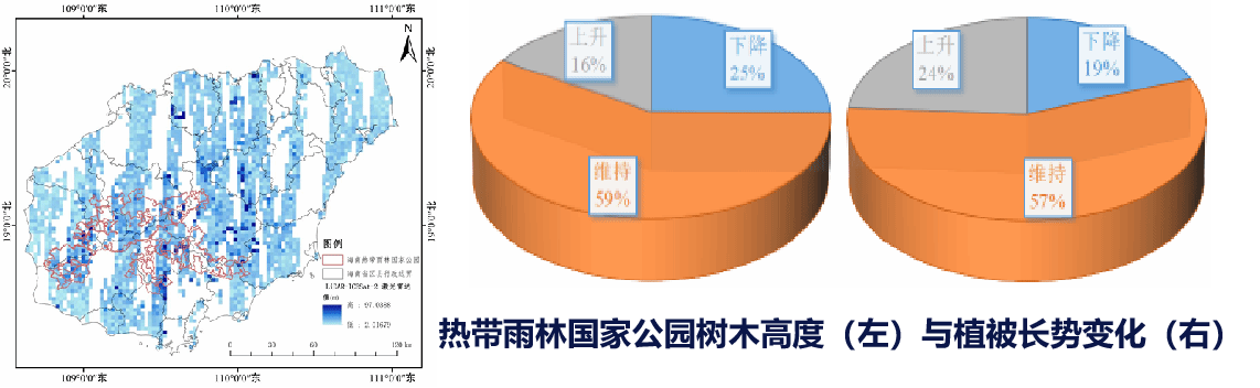 承担国家发改委项目“生态环境状况卫星遥感动态监测”、国家自然科学基金联合重点项目“基于生物多样性与生态系统功能的受损热带低地雨林的生态恢复机制”“海南长臂猿生境维持与恢复机制”等。