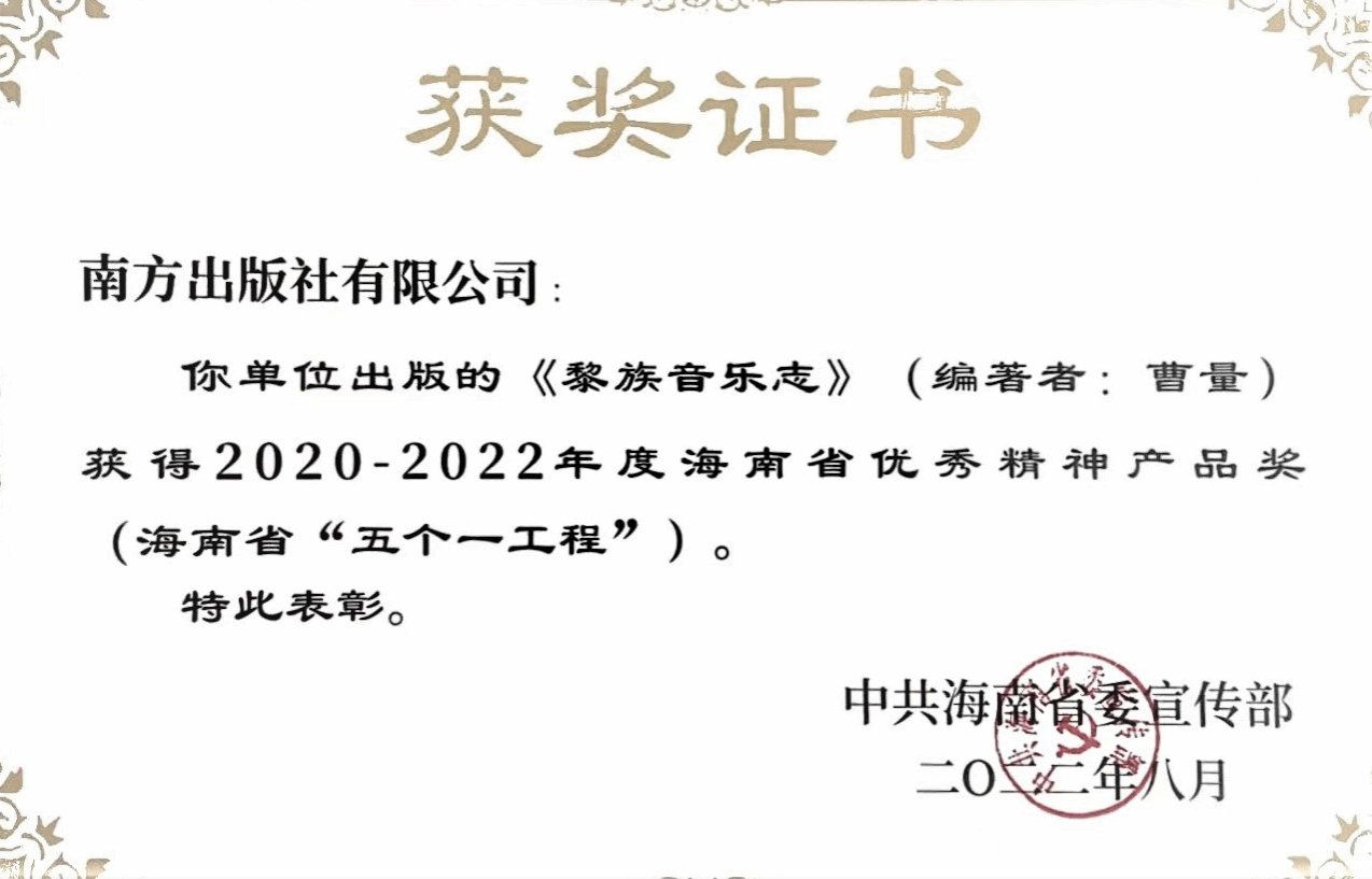 依托文化部民族民间文艺发展中心、铸牢中华民族共同体意识研究中心等平台,建设海南黎族数字影像资料库和南海文献数字资料库等数字资源,利用大数据、云计算等现代科技手段,围绕海南省民族民俗文化资源进行多层次、全方位的数字化采集、整理及研究。出版《海南民俗文化生态研究》《黎锦传统图案研究》等著作,开展黎锦饼染技艺传承人才技术培养,《黎族音乐》荣获2022年度海南省“五个一工程”奖。