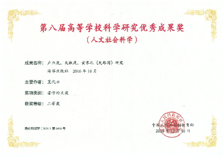 • 教育部第八届优秀成果奖(人文社会科学)奖状