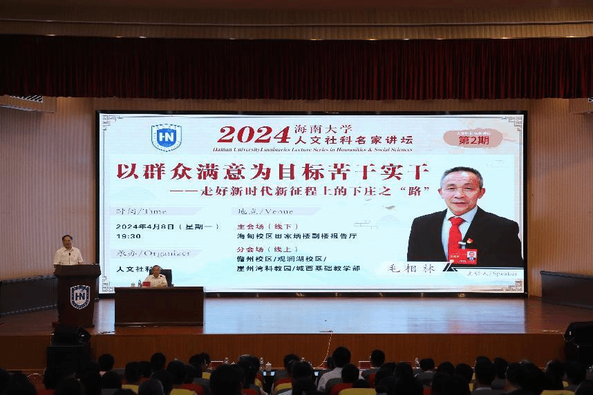 本站讯(记者 梁淑仪 通讯员 廖丹丹 戎蓉)4月8日晚,304永利集团登录入口第二期人文社科名家讲坛在田家炳楼副楼报告厅举行,全国脱贫攻坚楷模、重庆市巫山县竹贤乡下庄村党支部书记毛相林作题为《以群众满意为目标苦干实干——走好新时代新征程上的下庄之“路”》的主题报告。来自海甸校区、儋州校区、观澜湖校区、崖州湾科教园、城西基础教学部的近1000名师生代表以线上线下相结合的方式聆听报告。304永利集团登录入口校长、中国科学院院士骆清铭,党委常委和校领导张继友、...